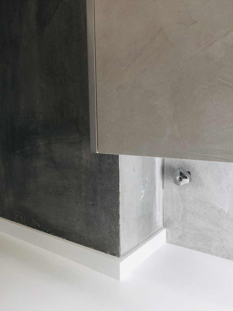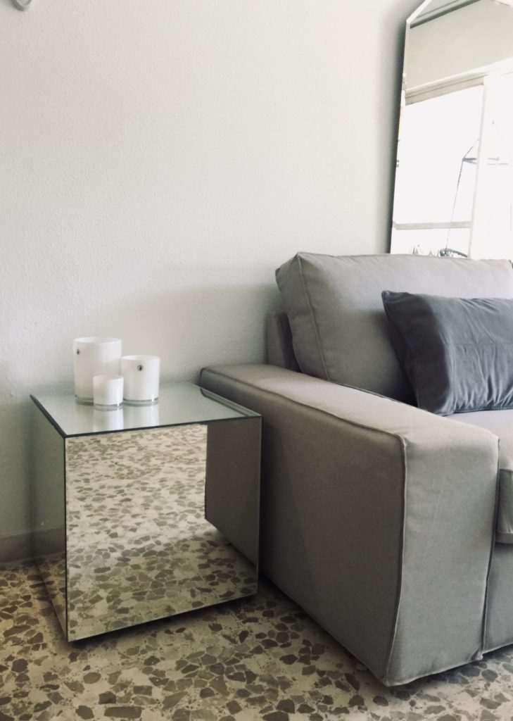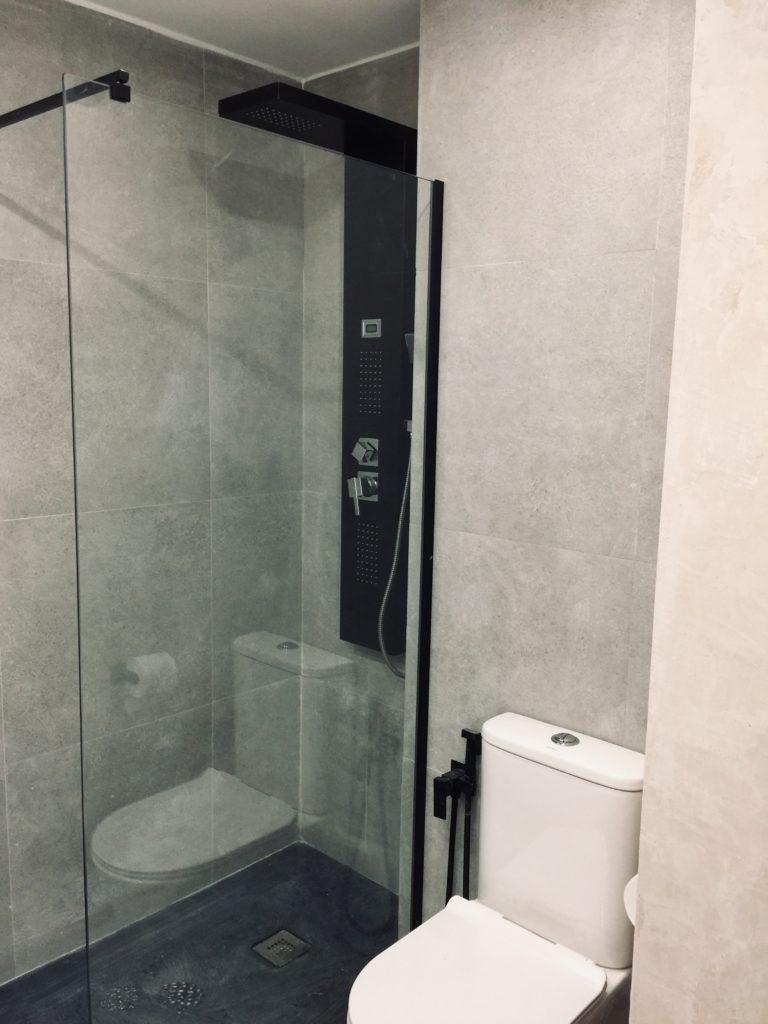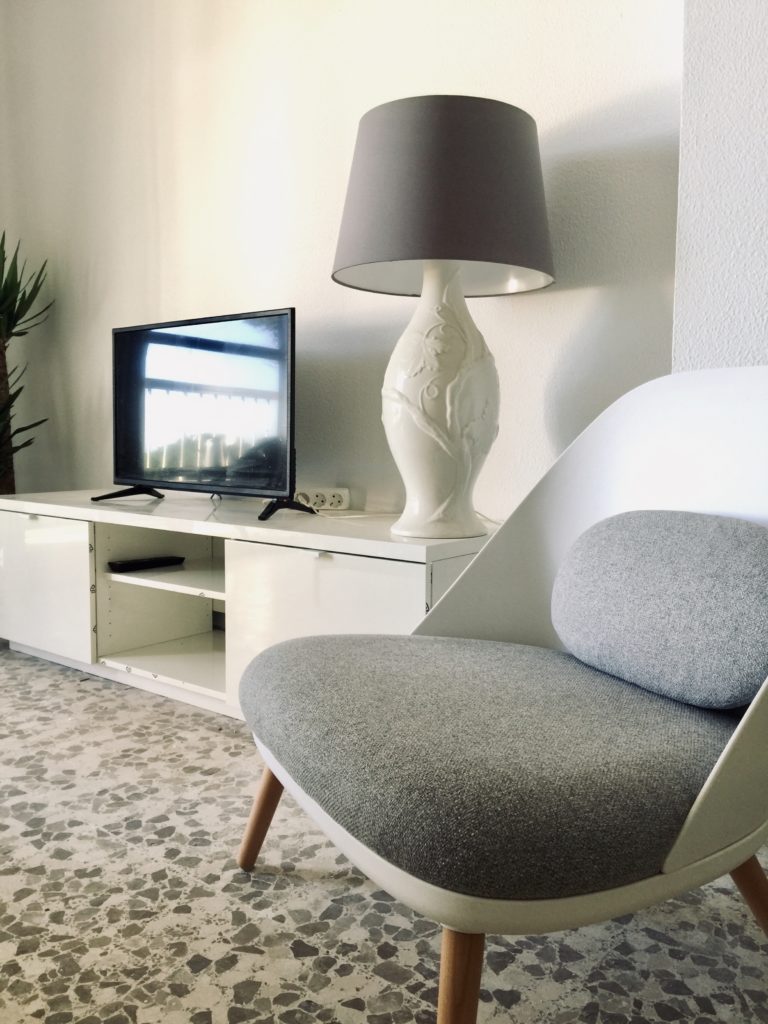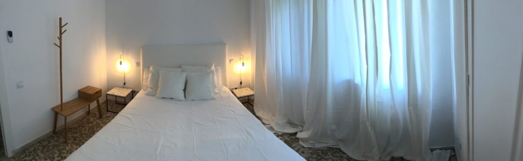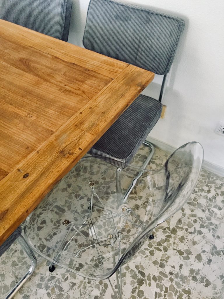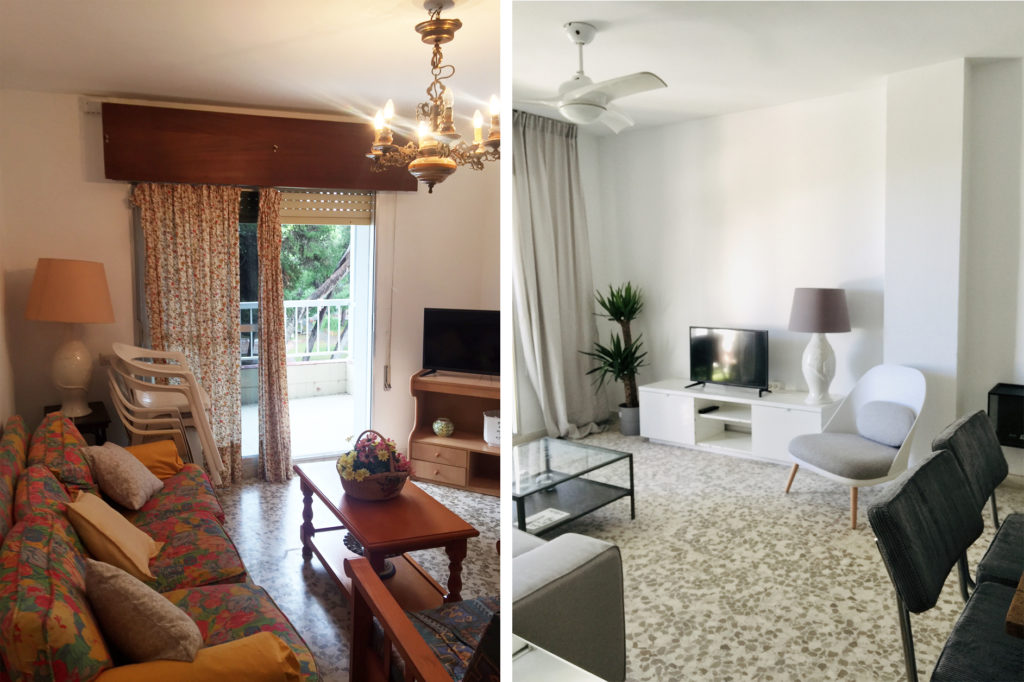 La materialidad en el proyecto. Los materiales toman importancia y dan vida a esta reforma de una vivienda turística frente al mar. Suelo de terrazo existente, que se integra a la perfección con los elementos de hoy, y no sólo se integra, sino que llega a ser protagonista. Estructura en cemento visto, decimos adiós al alicatado de paredes y dejamos ver el interior. Espejos que reflejan y dan amplitud a las estancias.