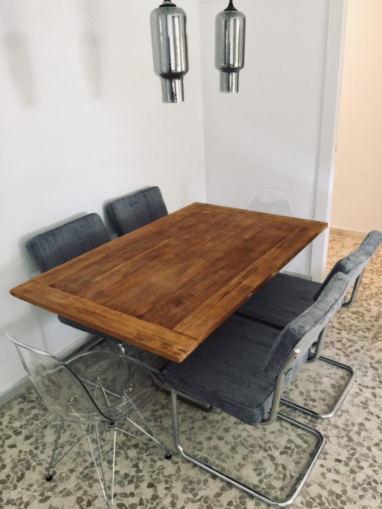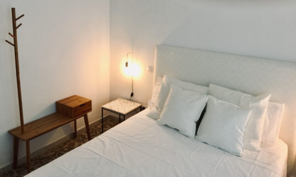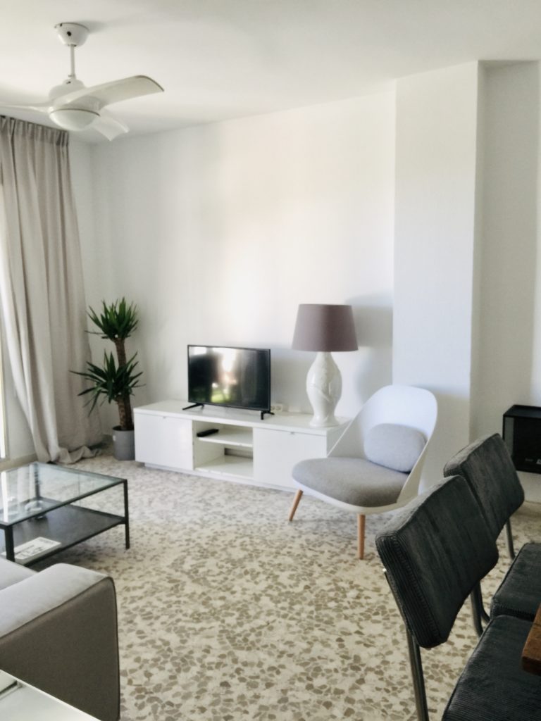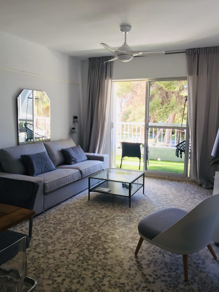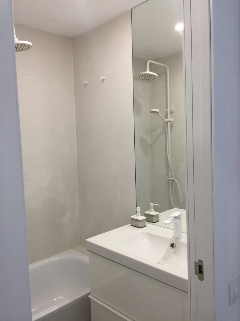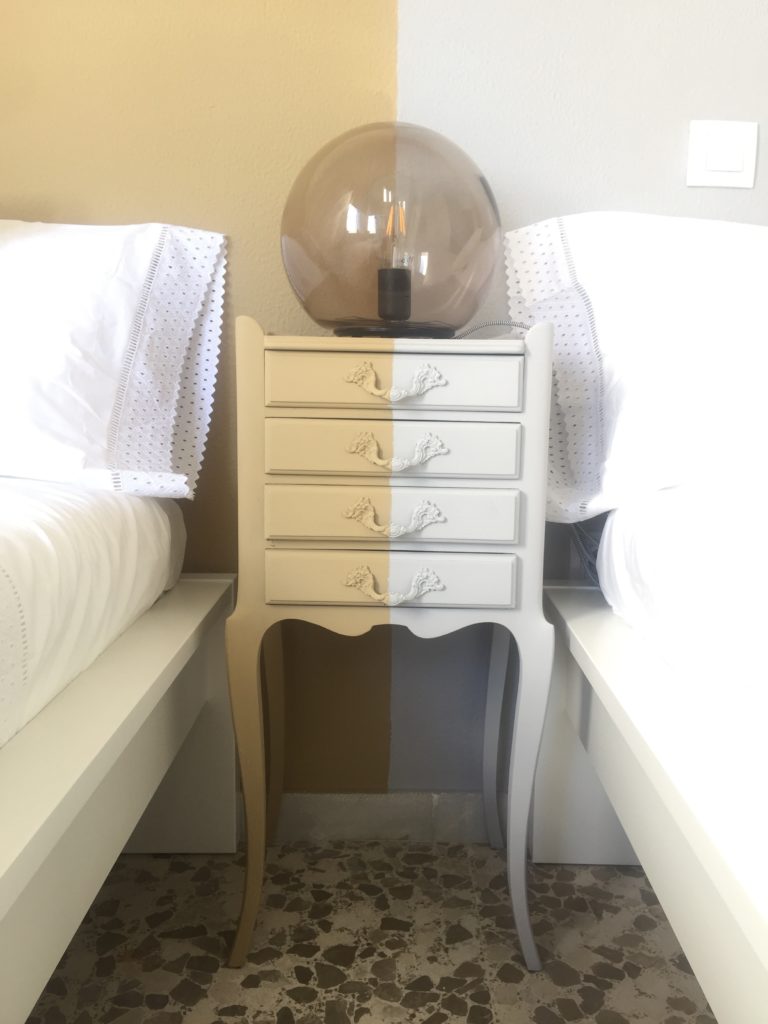 La materialidad en el proyecto. Los materiales toman importancia y dan vida a esta reforma de una vivienda turística frente al mar. Suelo de terrazo existente, que se integra a la perfección con los elementos de hoy, y no sólo se integra, sino que llega a ser protagonista. Estructura en cemento visto, decimos adiós al alicatado de paredes y dejamos ver el interior. Espejos que reflejan y dan amplitud a las estancias.