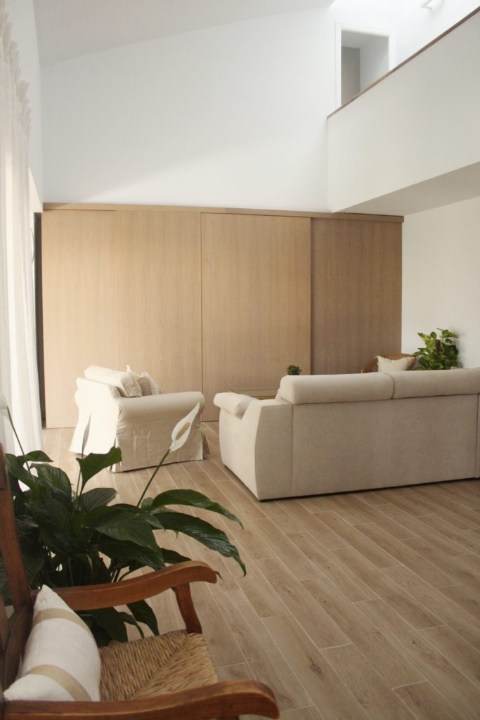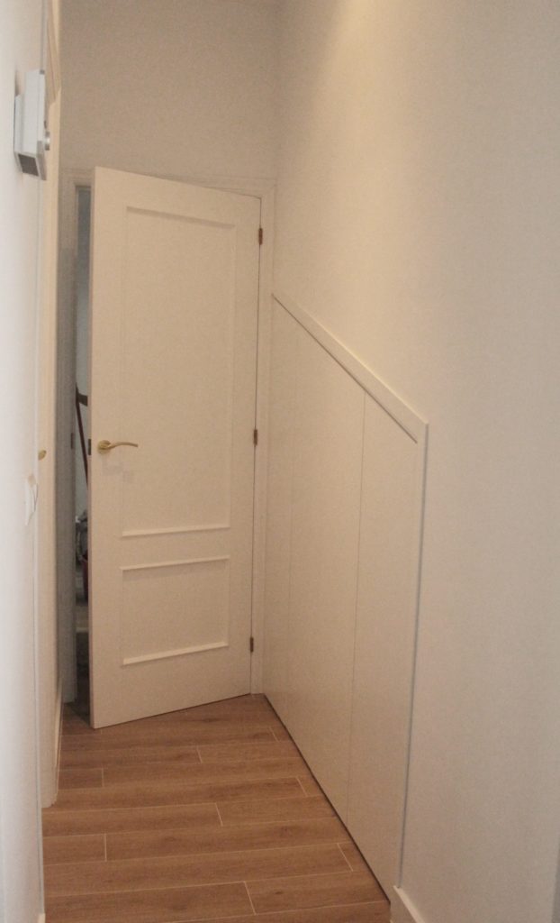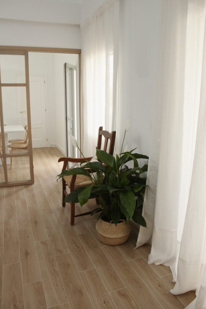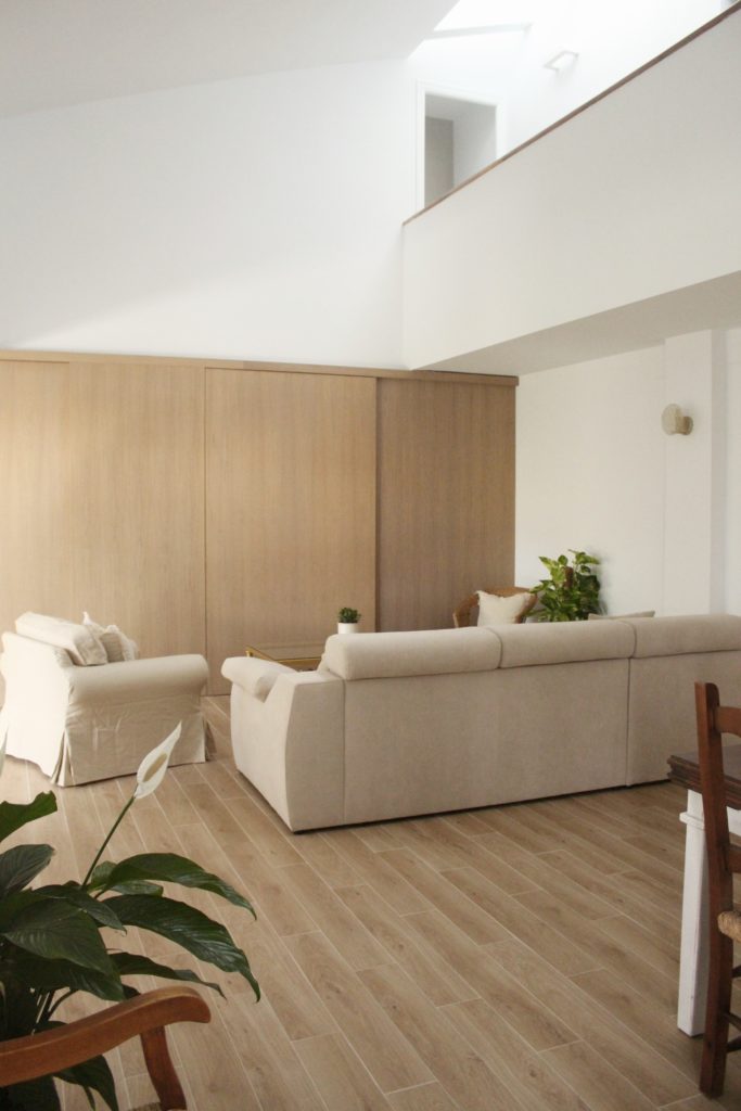 Para los suelos se ha optado por un gres porcelánico de la firma APE de gran calidad. Hay que destacar el trabajo de carpintería espectacular en toda la vivienda.